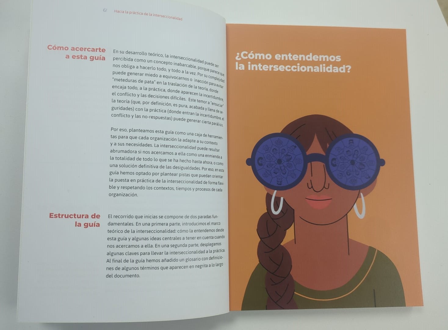 Durante el taller, las autoras de la guía ofrecieron claves para comprender la interseccionalidad como una herramienta política y práctica, orientada a reconocer cómo interactúan distintos ejes de desigualdad —género, origen, clase, edad, orientación sexual, diversidad funcional, entre otros— en las realidades de las personas. Se debatió sobre la importancia de adoptar miradas flexibles, situadas y sensibles al contexto, así como de revisar las lógicas internas de las organizaciones, sus metodologías y sus formas de relación con la comunidad.
